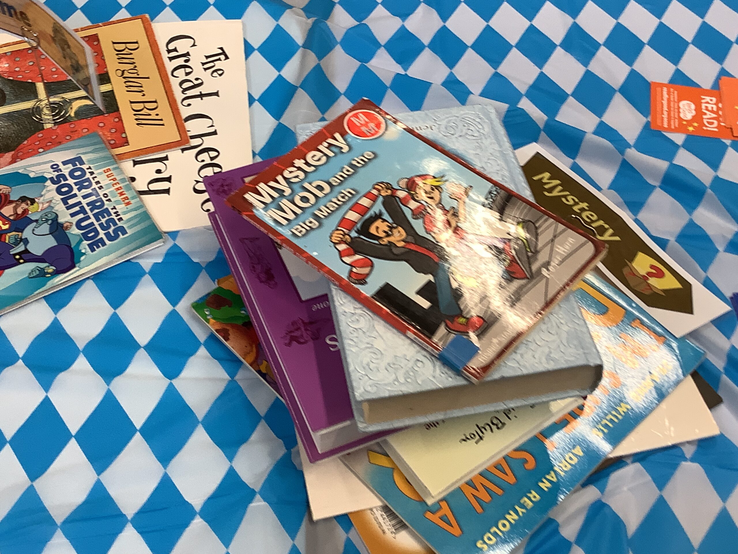 Close up picture of one of the tables at the World Book Day cafe with a selection of books - 2026