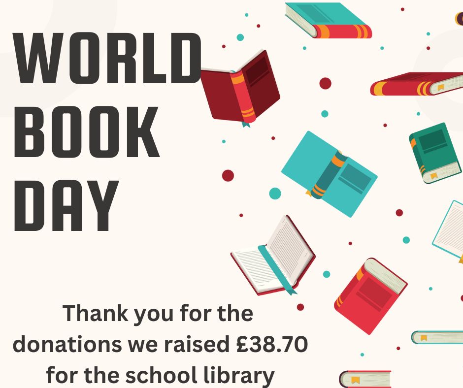 Graphic for World Book Day donations used to buy new Library Books - 2025